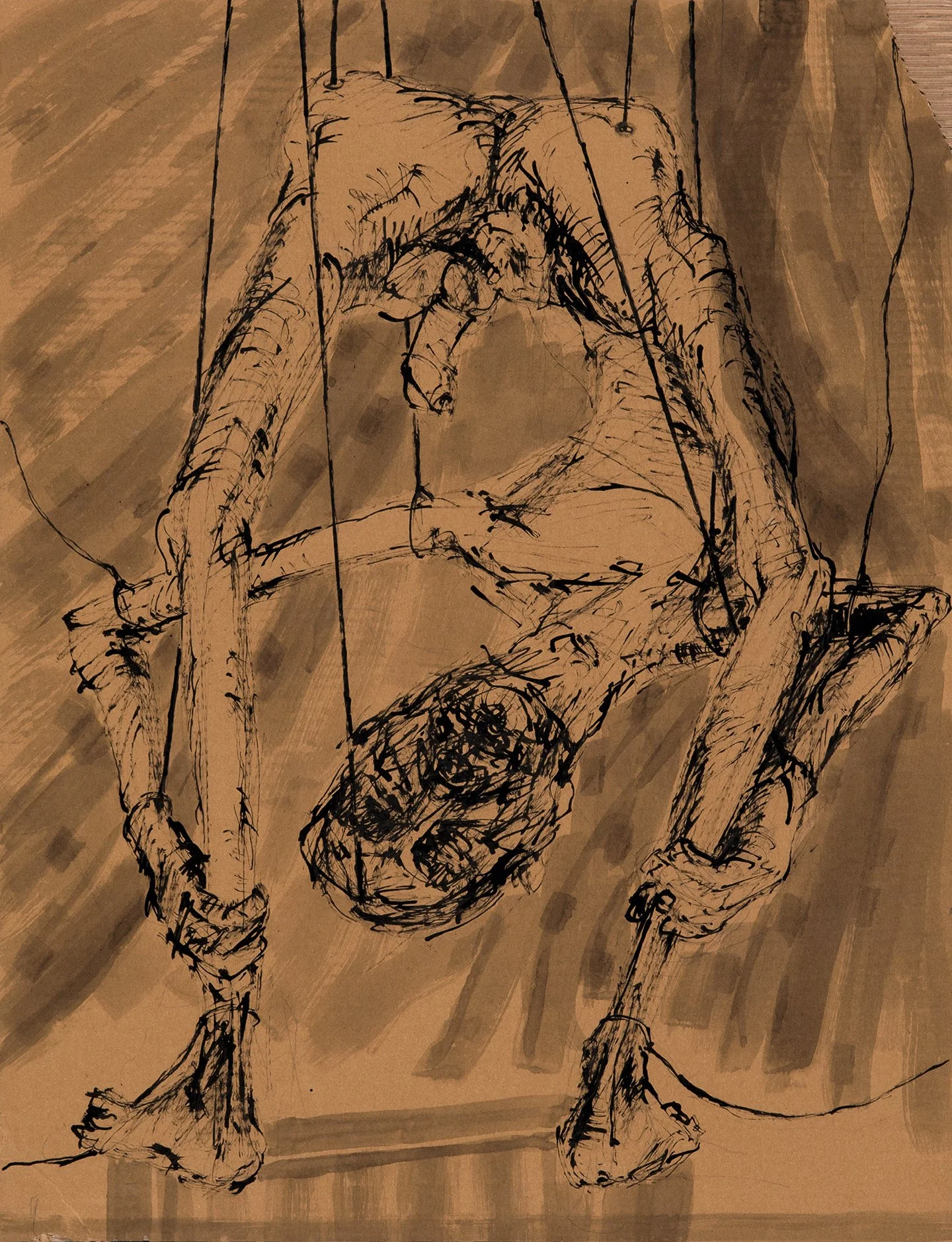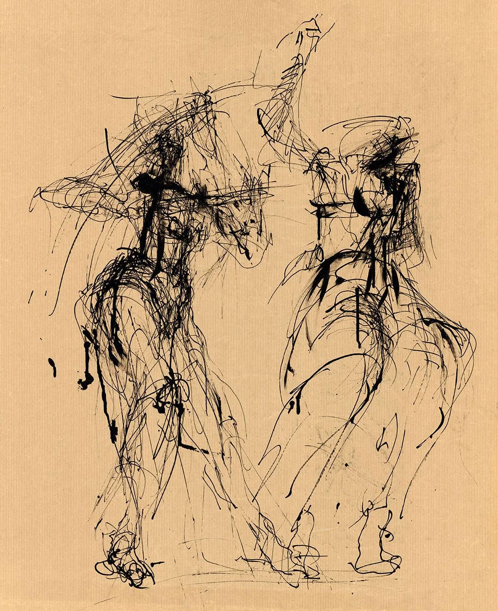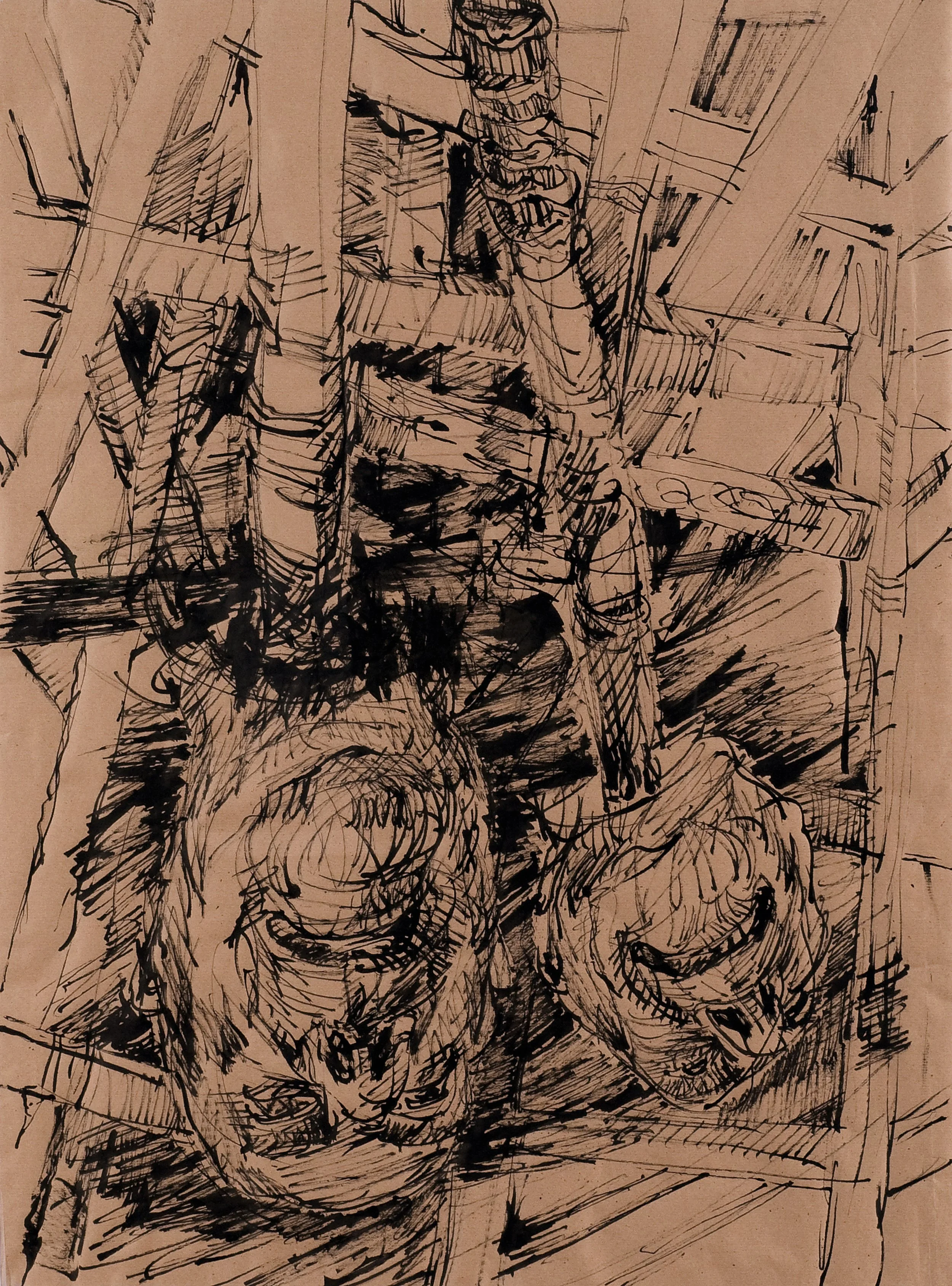 „Seine Rohrfederzeichnungen sind von großer Lebendigkeit und zeichnerischer Direktheit. Er entwickelt eine visuelle Sprache die sowohl impulsiv als auch strukturiert ist. Peter Junghanss’ schätzt die „ grafische Ausdruckskraft“, das „Kratzige, Krakelige“ der Rohrfeder, die „Akzeptanz von Zufällen”...denn hier geschieht eine unbewusste Übernahme von tieferliegenden Wahrnehmungen“.