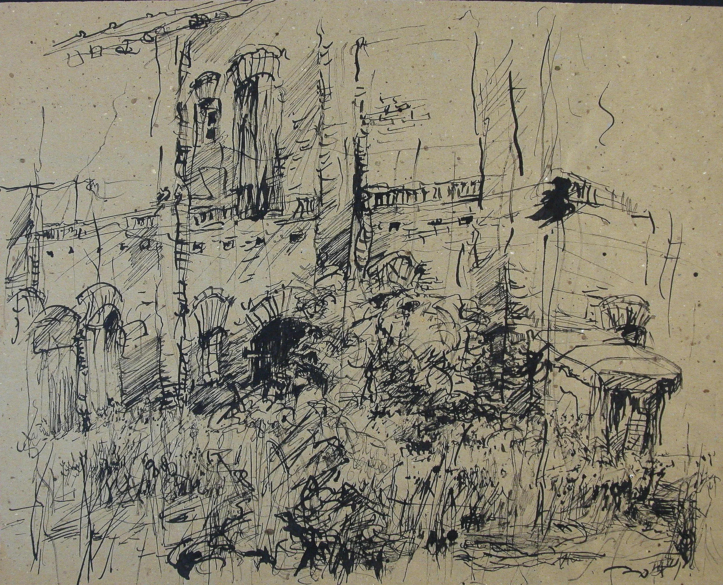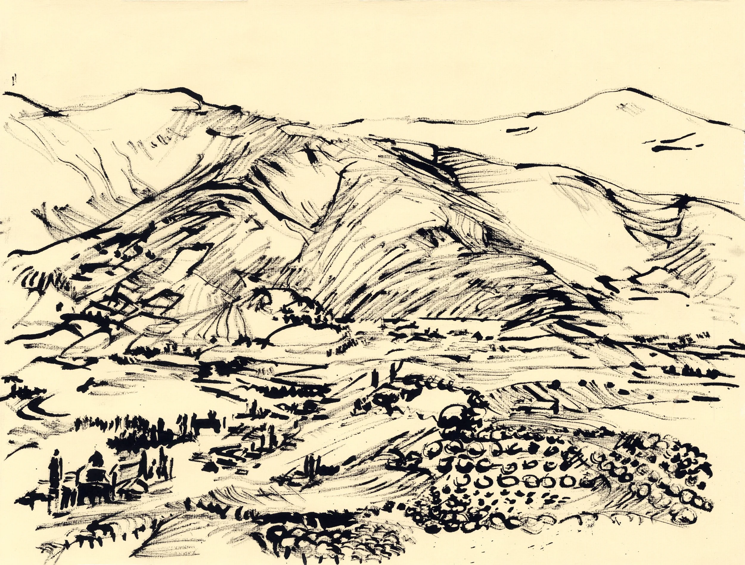 Erbebenzerstörtes Bergdorf auf Kephalonia, 1991, 75 x 100 cm