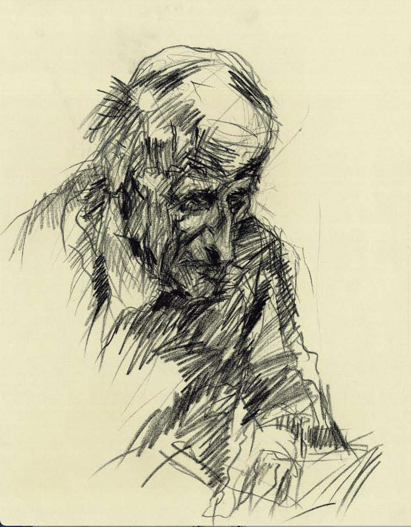 Oft eine fast abstrakte Qualität annehmend, fangen sie den Charakter mit wenigen, gezielt gesetzten Strichen – nicht über das Detail – sondern über Ausdruck und Haltung ein. Auch ohne die verborgenen Lebensgeschichten zu kennen, spürt der Betrachter die geistige Kraft, die aus diesen Physiognomien strahlt.”